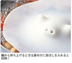 電子レンジのラップがわりやボトルオープナーとしても使えます。鼻から湯気が出る様がなんともユーモラス!