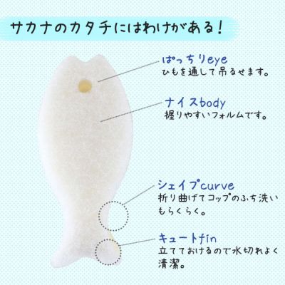 おさかなの形が握りやすく、シッポからコップに入れて しっぽ部分をくるっと回せば、コップ底の隅の汚れまで届きます。3層構造で泡立ちにも優れています。人気商品です。