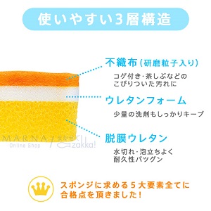 使いやすい3層構造ナイロン不織布層・・・ガンコ汚れに。