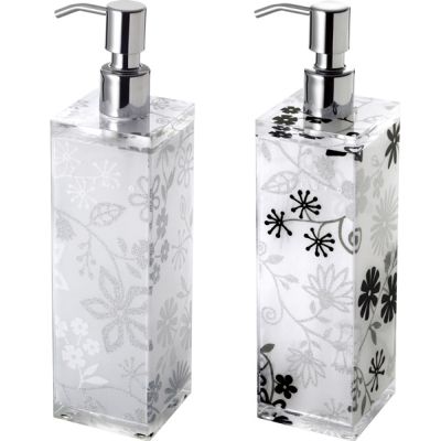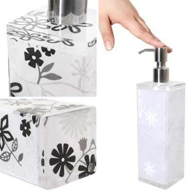 フラワーモチーフのテキスタイルが優しくバスルームを演出するソープボトルです。
