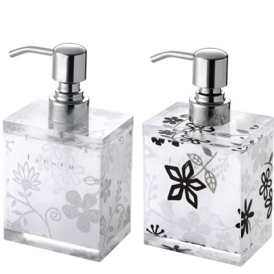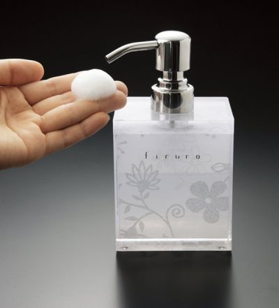 フラワーモチーフのテキスタイルが優しくバスルームを演出するムースボトルです。