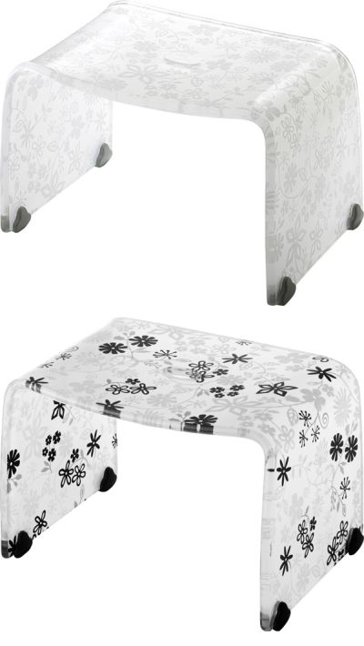 フラワーモチーフのテキスタイルが優しくバスルームを演出するバスチェアです。