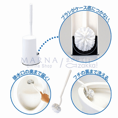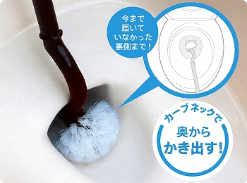 500人のモニターをおこない、トイレブラシの不満点を洗い出し、そこから開発した「本当に使いやすい」トイレブラシです。 50台以上の便器のフチ裏の形状をベースに設計しました。卵型ブラシとカーブネックでフチ裏にピタっと届きます。