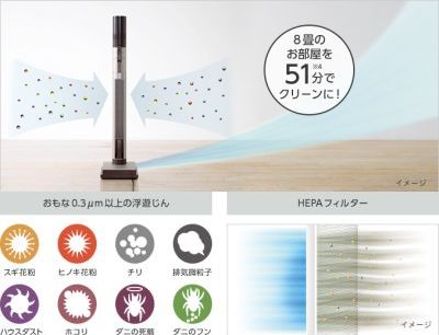 充電台にHEPAフィルターを採用した空気清浄機能で、お掃除していないときもお部屋の空気を常にキレイに。