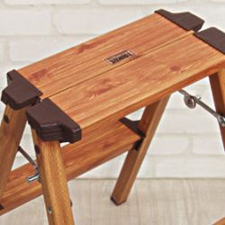木目調の仕上げで飾りたくなるステップスツールです。