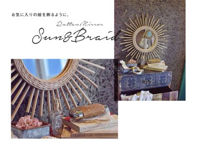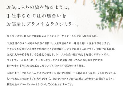 手編みラタンミラー 円形ミラー Sun&Braid 壁掛けミラー |