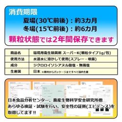 この「スーパーK」はジクロロイソシアヌル酸塩と食品添加物を成分とし、顆粒状になっています。