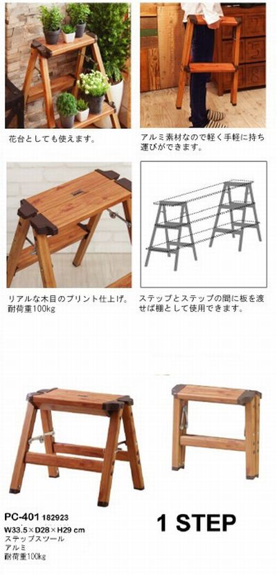 ステップスツール 木目調  1段  脚立 踏み台  |