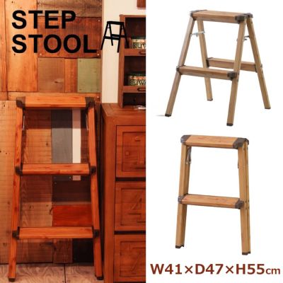 ステップスツール 木目調  2段  脚立 踏み台  |