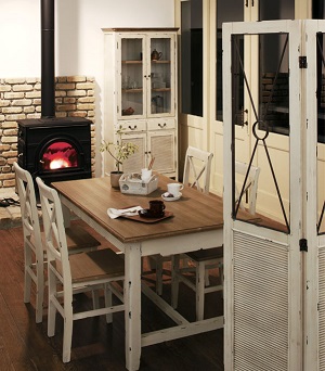 繊細さと愛らしさを併せ持つ、フレンチアンティークデザインのが特徴のダイニングテーブル