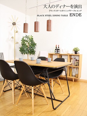 ブラックフレームの質感と曲線がセンスの良さを感じさせてくれるダイニングテーブル