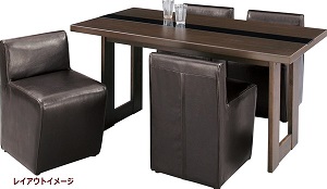 天然木の木目が美しく、スタイリッシュなデザインのダイニングテーブルです