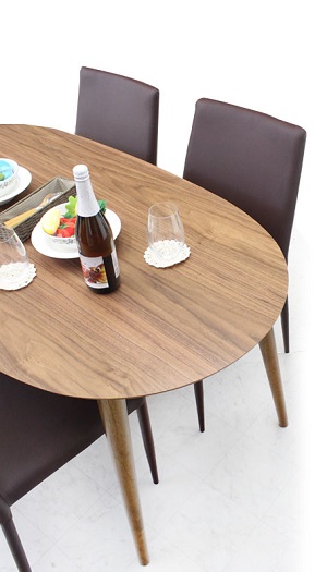 天然木で作られたナチュラル感溢れる優しい丸みが特徴の楕円形テーブルです