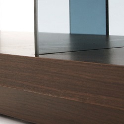 パーチクルボード、プリント化粧合板、8mmグレー強化ガラス  |