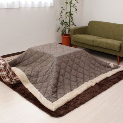 ふかふかふわふわのボアパイピングでぐるりと囲ったナチュラルなツイード調こたつ布団。