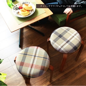 天然木を使用した脚と、レトロな印象のチェック生地の座面が特徴的なスタッキングチェア。