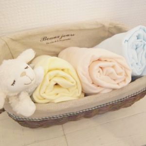 風呂上りに赤ちゃんを包みやすい正方形サイズです。